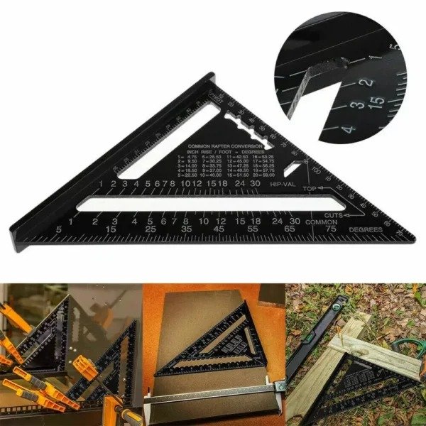 The 12 inch speed square is an essential and reliable measuring tool for builders, roofers, carpenters, and DIY enthusiasts. It combines multiple tools in one compact, lightweight design. You can use it as a tri-square, miter square, protractor, line scriber, and saw guide, making it perfect for framing, roofing, and general construction tasks.