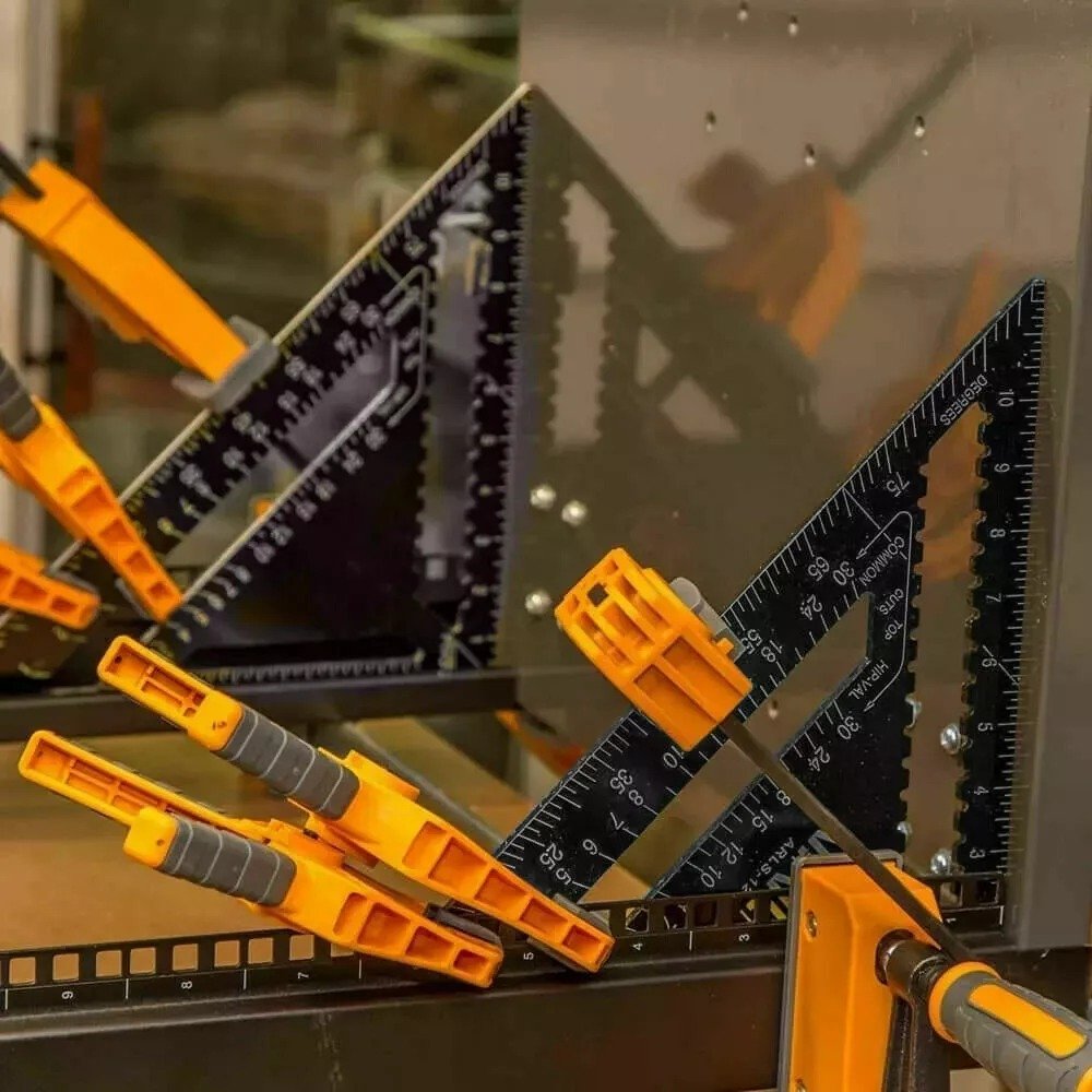 This speed square is made from high-quality aluminum, which ensures both strength and resistance to corrosion. Unlike plastic or wooden alternatives, it remains accurate even after years of regular use. The etched metric and imperial markings are deeply engraved, so they don’t fade over time. As a result, you get consistent performance on every project.