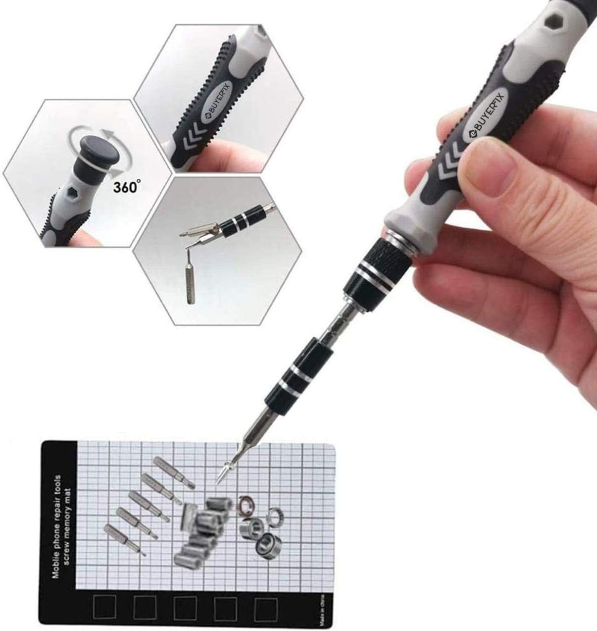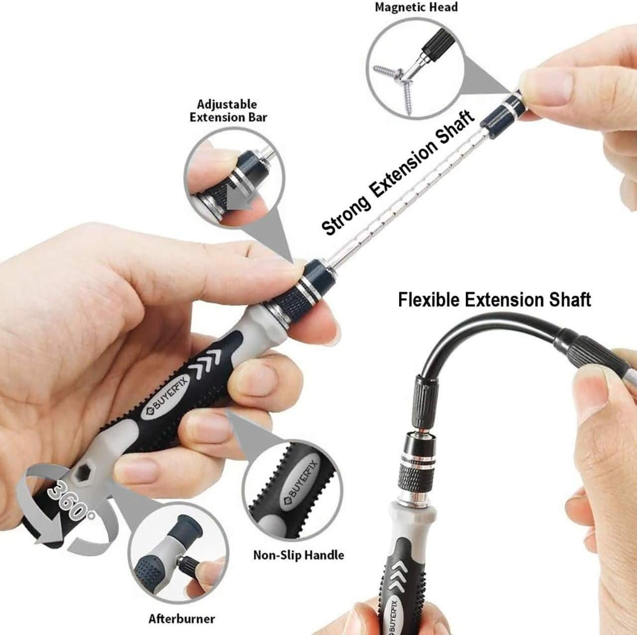 Each bit is made from durable CRV steel to ensure long-lasting use. The ergonomic, soft-touch handle provides comfort and stability during extended work. A static-free design also helps protect sensitive electronics.