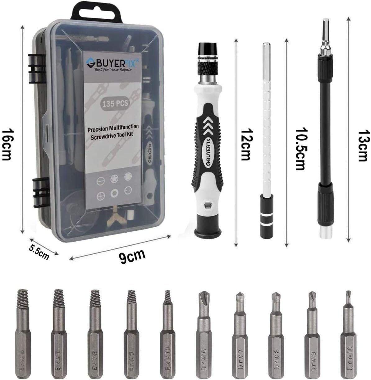 The Precision Screwdriver Set DIY includes 135 professional tools in one compact kit. Designed for electronics and small devices, it works with iPhones, laptops, tablets, game consoles, cameras, watches, and more. With longer bit depth, you can easily reach deep or narrow screw positions for precise repairs.