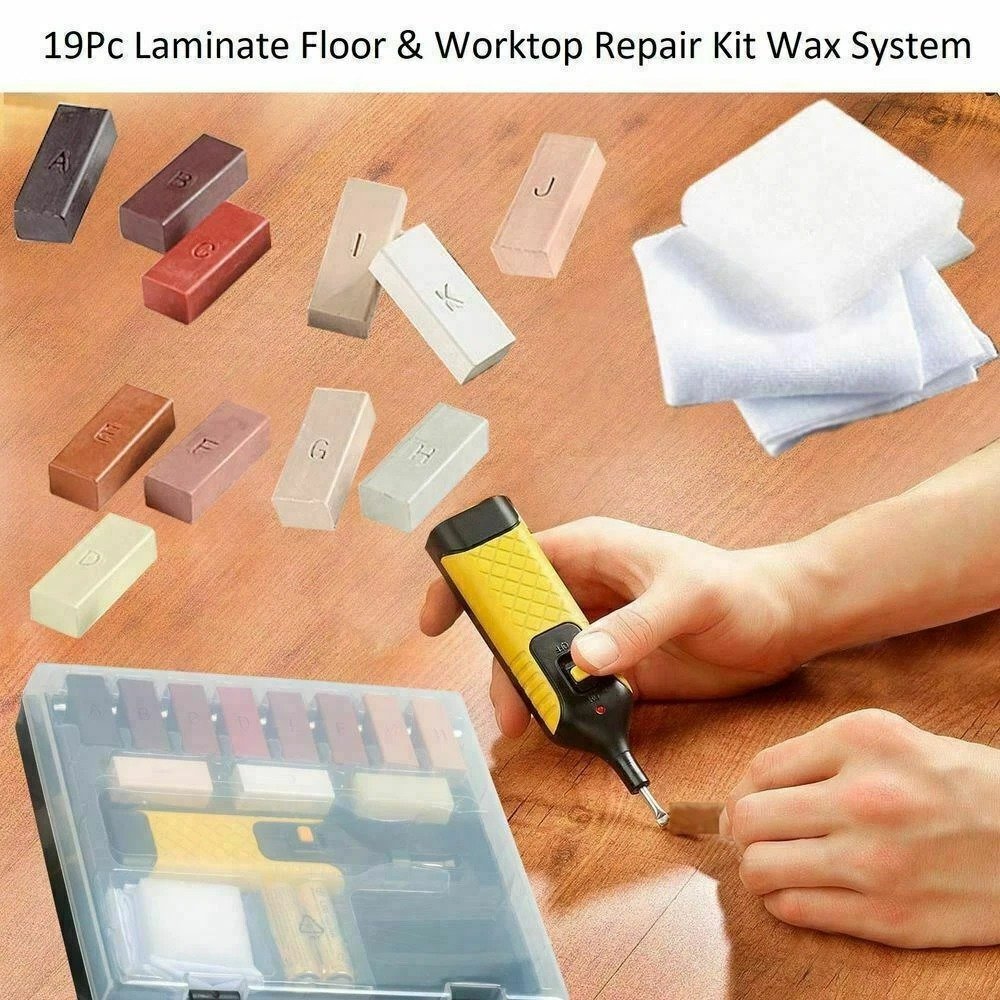Repair chips, scratches, and minor damage quickly with this laminate floor repair kit. Perfect for laminate floors, worktops, cabinets, and wooden furniture, this 19-piece set helps restore surfaces efficiently and affordably.