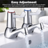 The 2pcs twin basin sink hot and cold taps chrome provide precise and independent control of water temperature, allowing you to easily adjust hot and cold flow for maximum comfort, convenience, and efficiency in daily use.