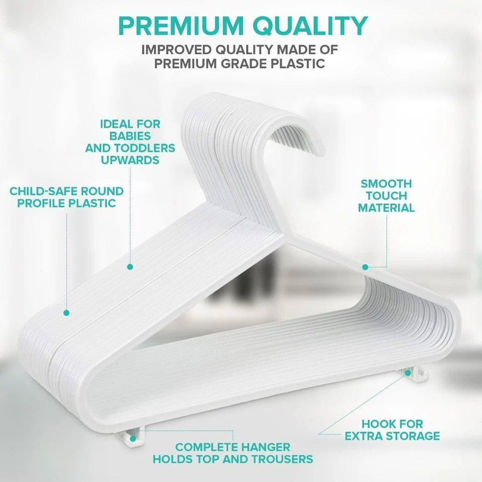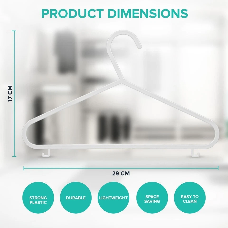 Crafted from premium-quality plastic, each hanger is strong enough for everyday use while remaining lightweight for easy handling. The 29cm wide hangers are specifically sized for small clothing, making them ideal for tops, trousers, dresses, skirts, baby grows, and jackets. Their slim, space-saving design allows for a tidy and efficient wardrobe, while the non-slip hooks keep clothes securely in place.