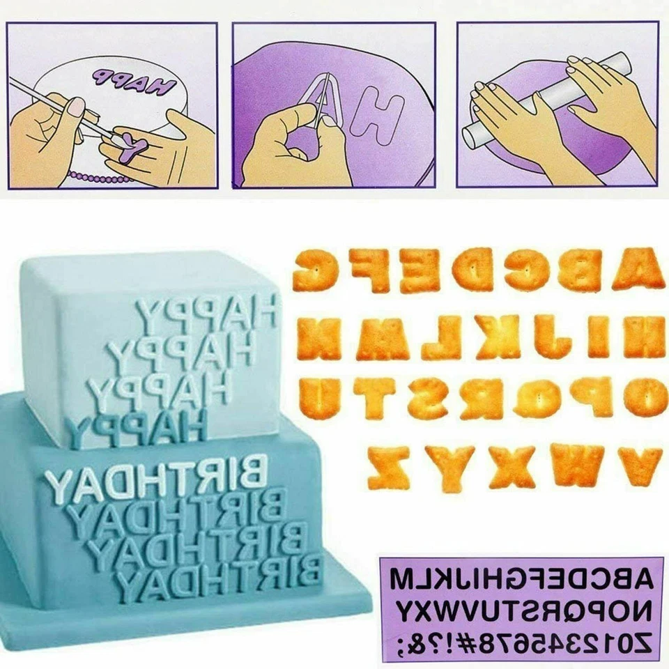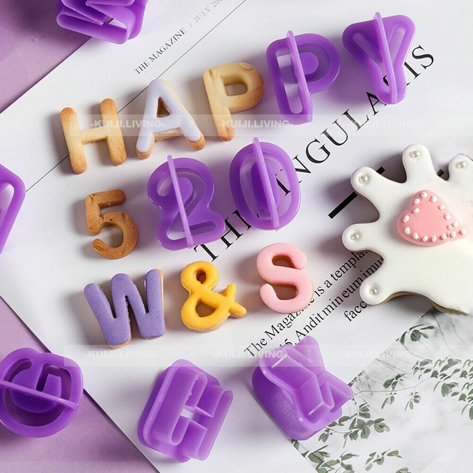 lphabets Letters Numbers Cake Fondant Cutter Set, designed for cake lovers, home bakers, and professionals. Whether you’re preparing birthday cakes, cookies, cupcakes, or pastries, this set allows you to add personalized letters and numbers to every treat. It includes 40 durable molds featuring the complete alphabet (A–Z), numbers (0–9), and additional symbols for unique designs.