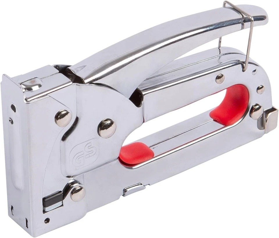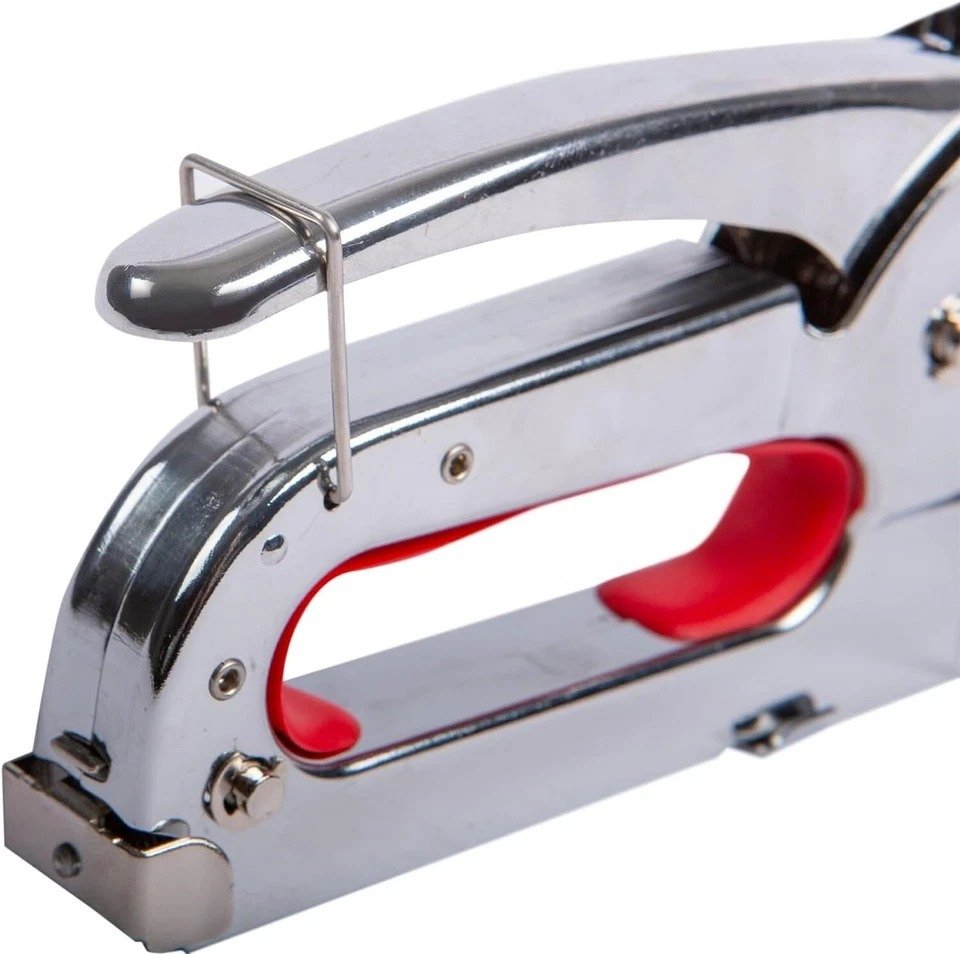 Ideal for a wide range of applications such as re-covering furniture, repairing window blinds, attaching fabric to walls, and fastening plywood, this staple gun offers both precision and durability. Its handle lock ensures safe storage when not in use.
