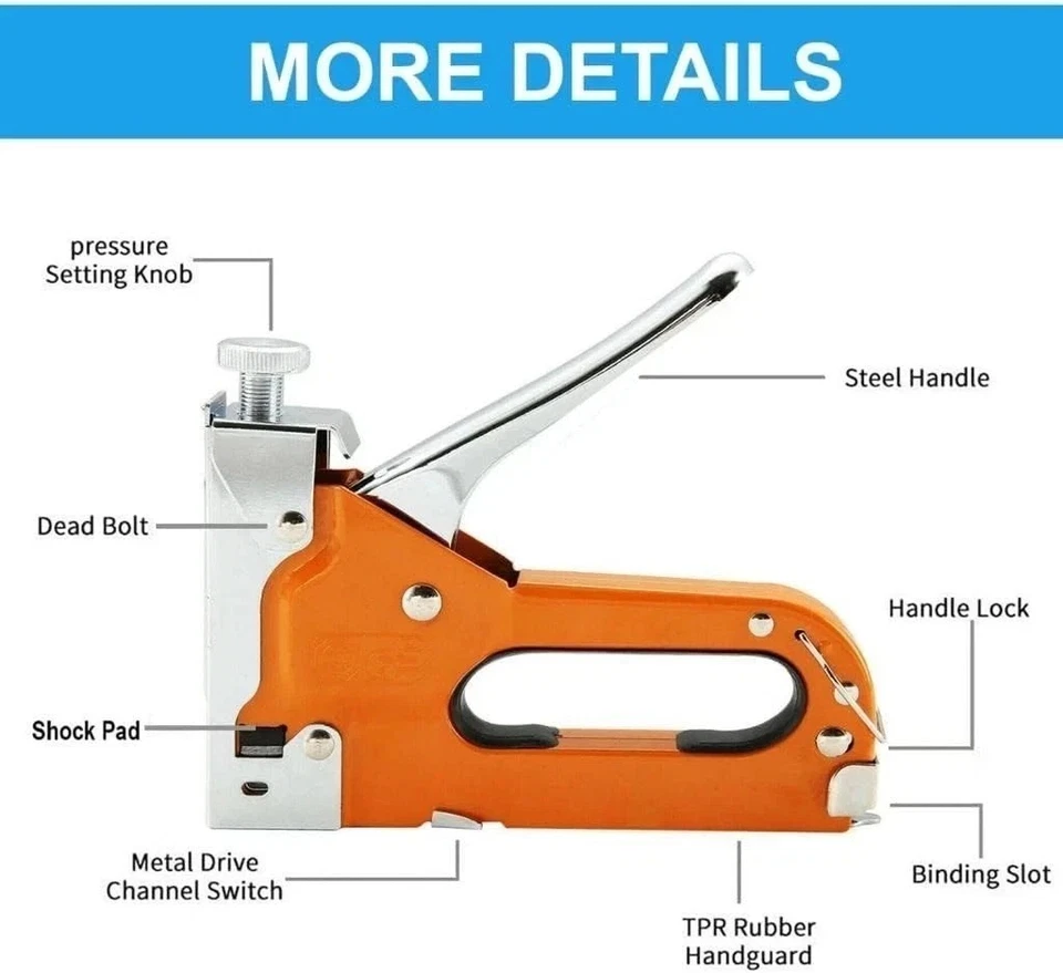 Take on demanding stapling projects with this Industrial-Grade Heavy Duty 3-Way Staple Gun, built for durability, precision, and versatility. Perfect for upholstery, carpentry, insulation, wire fixing, and general home or workshop repairs.