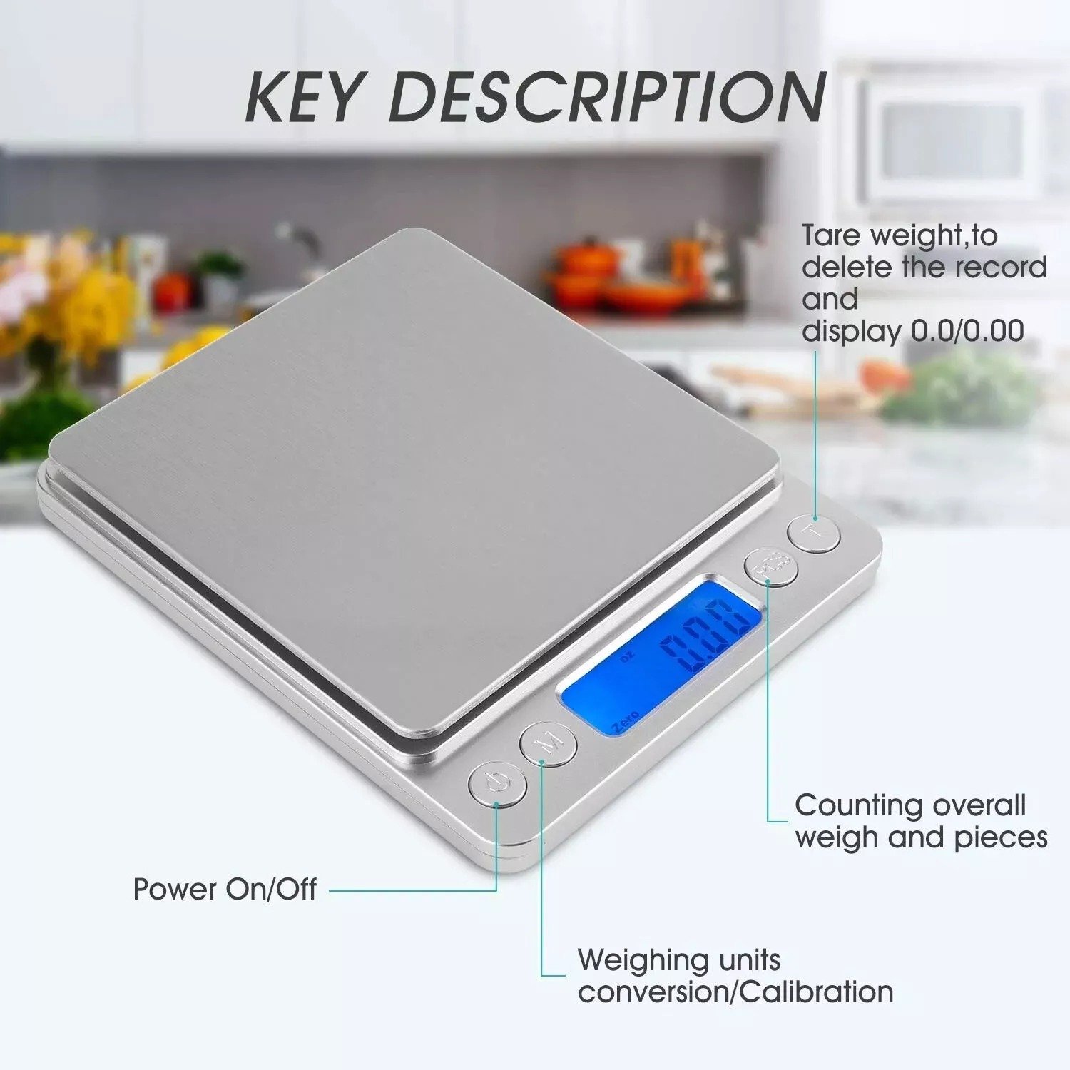 This scale provides highly accurate measurements from 0.01g to 500g, ensuring you get reliable results every time. Equipped with multiple weighing units (g, ct, dwt, ozt, oz, gn), it offers flexibility for different needs. The tare function allows you to weigh ingredients without including the container weight, while the counting function adds further convenience.