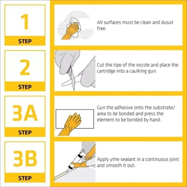 3-in-1 Function: Works as an adhesive, sealant, and filler in one tube.