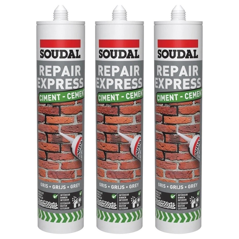 3 x Soudal Repair Express Cement Grey 290ml Cartridges