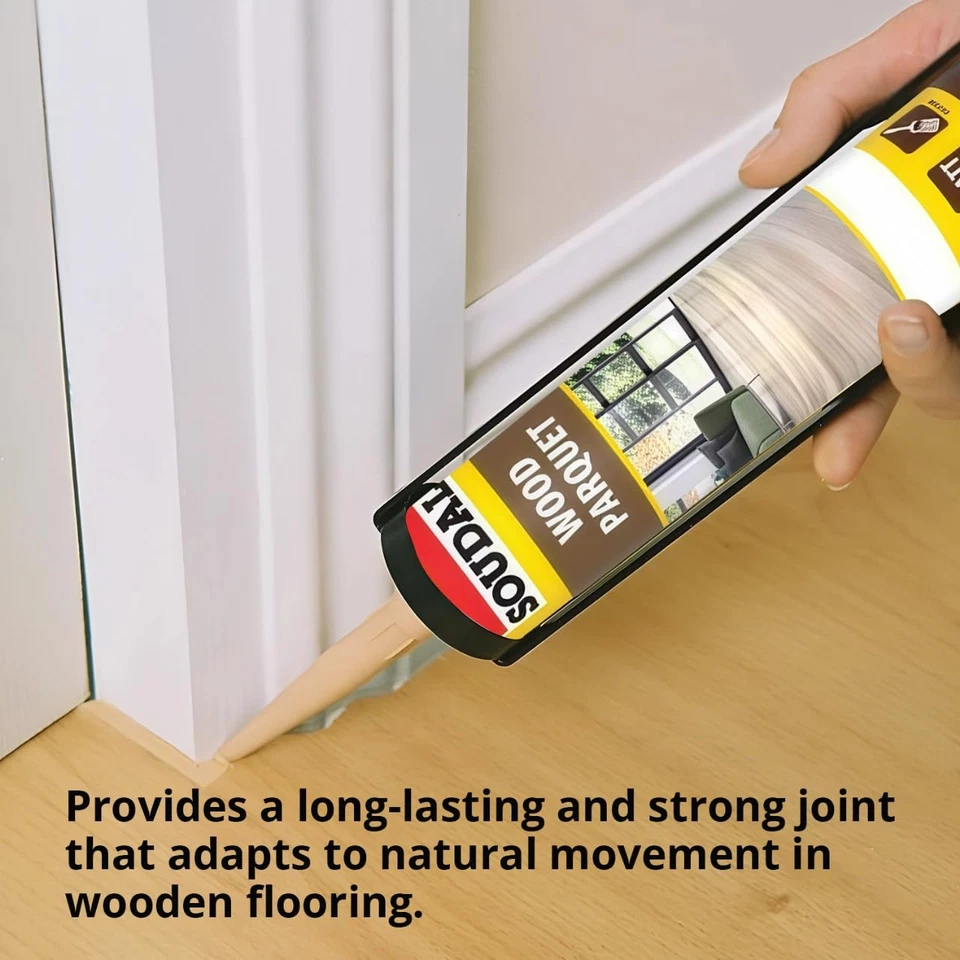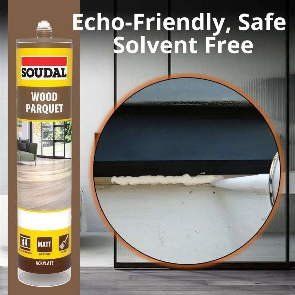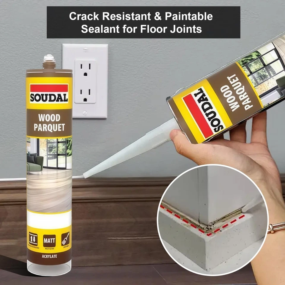 Complete your flooring and wood finishing projects with the Soudal Wood & Parquet Sealant (290ml, Mocca). This eco-friendly acrylic polymer sealant is specially formulated for parquet floors, skirting boards, and wooden joints, providing a durable, flexible seal and a smooth natural finish.